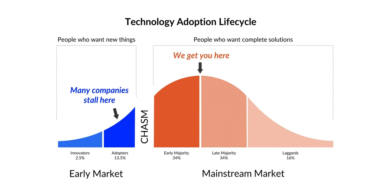 We collaborate with our early-stage clients to develop and execute effective market development strategies that generate product usage in early adopting accounts. Then we drive wide-spread adoption through targeted marketing programs and distributor engagement.